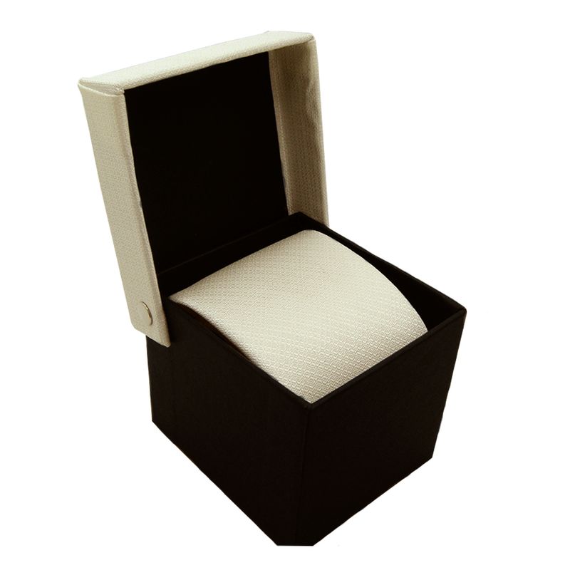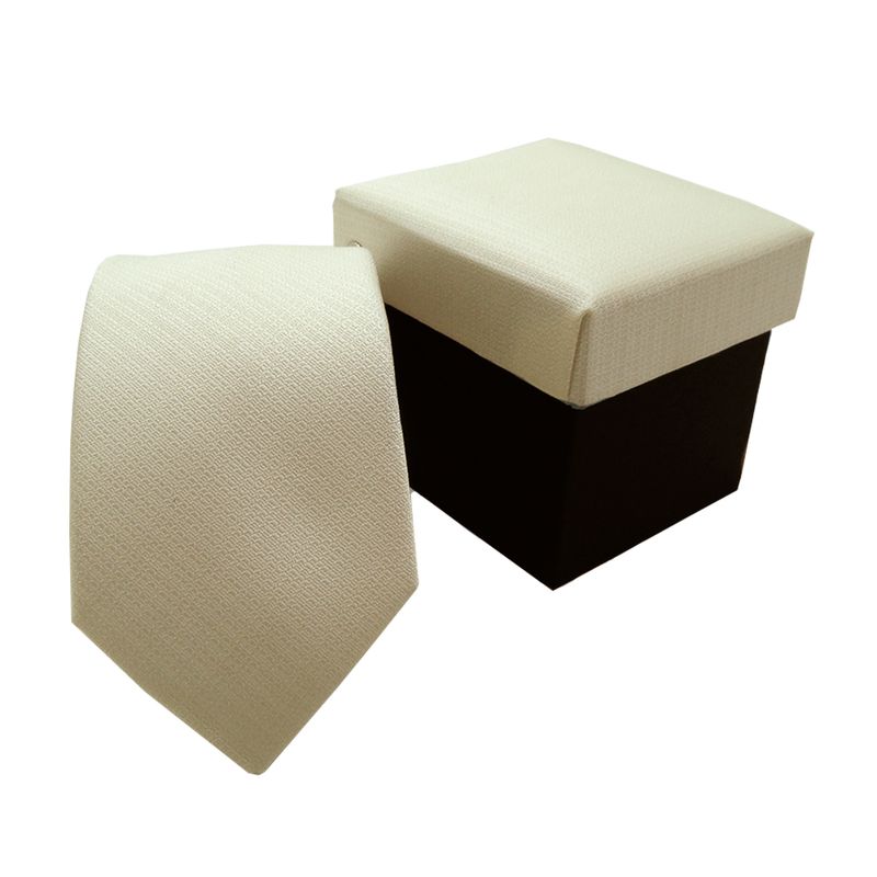 GRAVATA SLIM JACQUARD EM POLIÉSTER COM CAIXINHA 6 CM BEGE QUADRADOS
