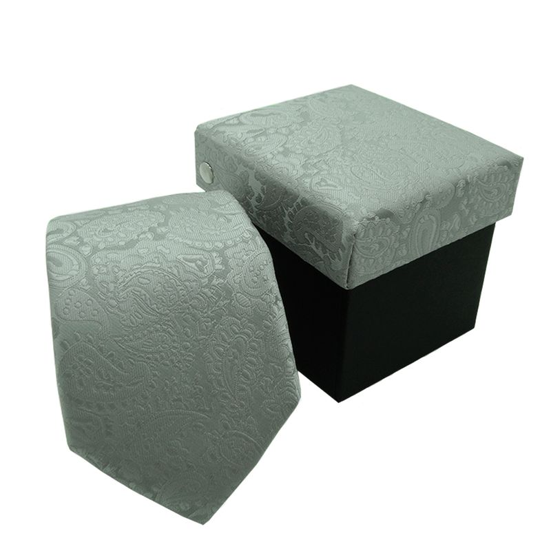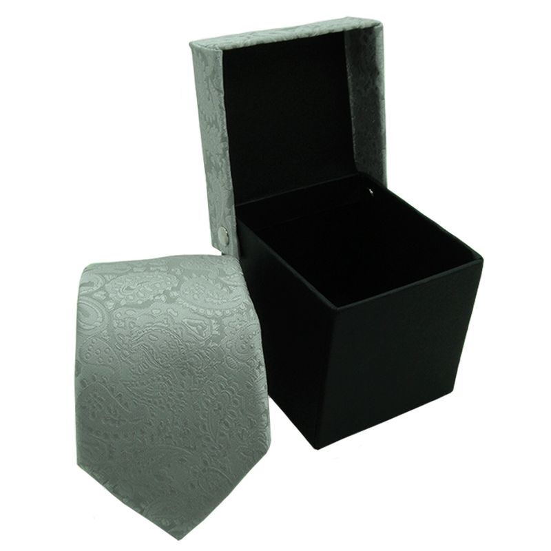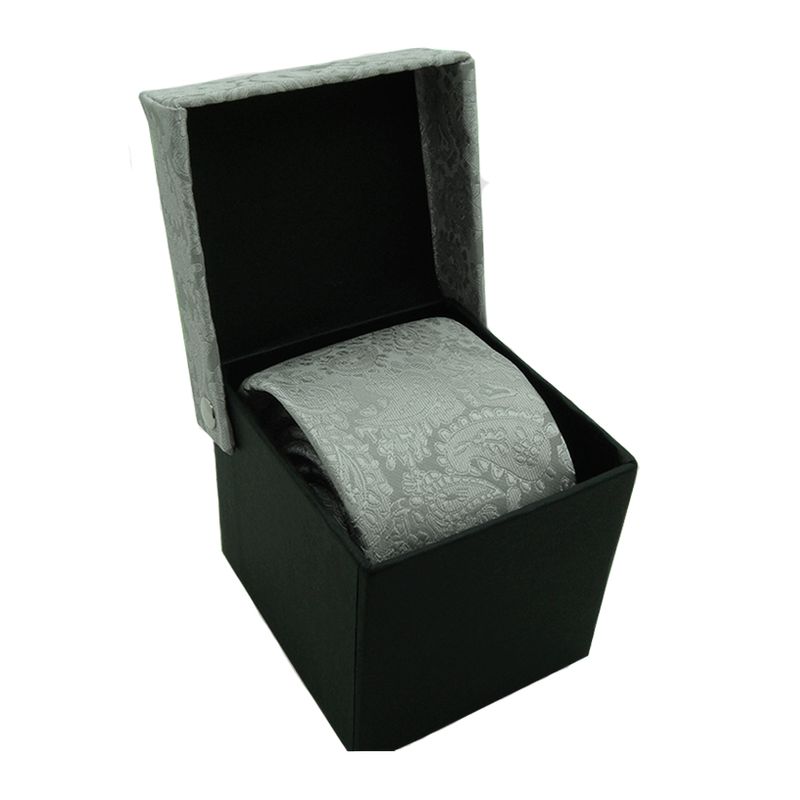 GRAVATA SLIM JACQUARD EM POLIÉSTER COM CAIXINHA 6 CM CINZA COM DESENHOS