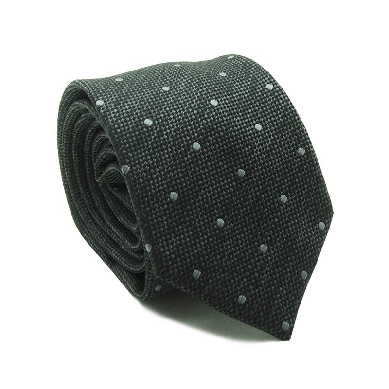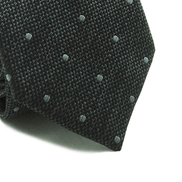 GRAVATA JACQUARD POLIÉSTER CLASSIC PRETO QUADRICULADO COM BOLINHA CINZA 7 CM