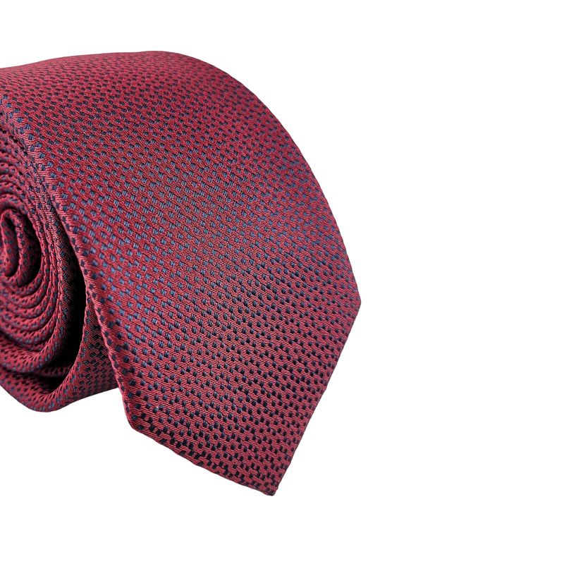 Gravata Slim Jacquard Poliéster Vinho Com Detalhes Preto