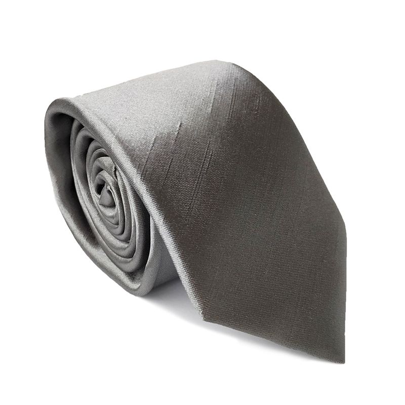 Gravata Tradicional Cerimonial Shantung Cinza Prateado Falso Liso