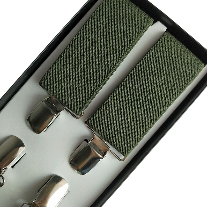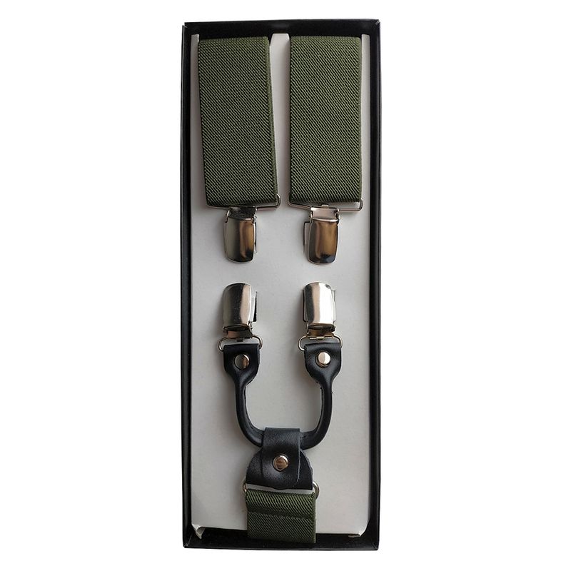 Suspensório de elástico, com fechos práticos e cor verde militar.